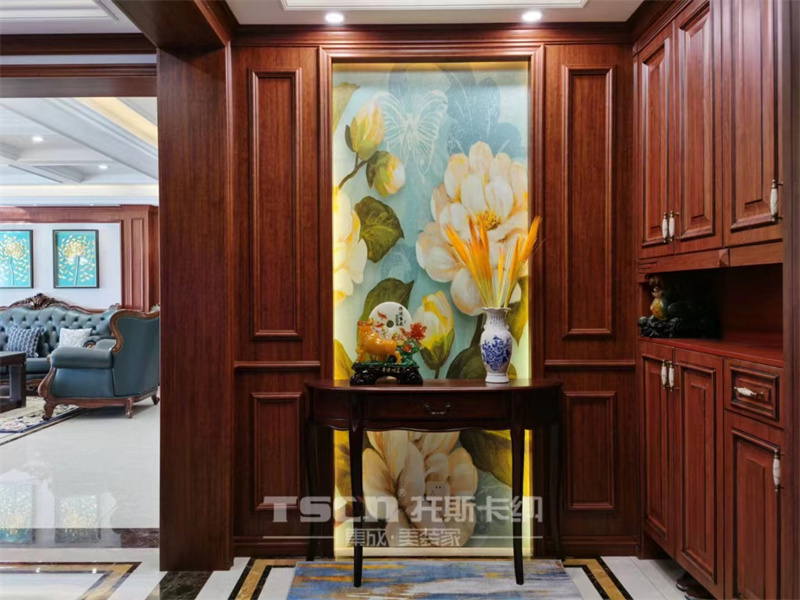 厚重的復(fù)古美式一般應(yīng)用于大宅和別墅裝修當(dāng)中,即有貴氣感,也有文化感,自在感。